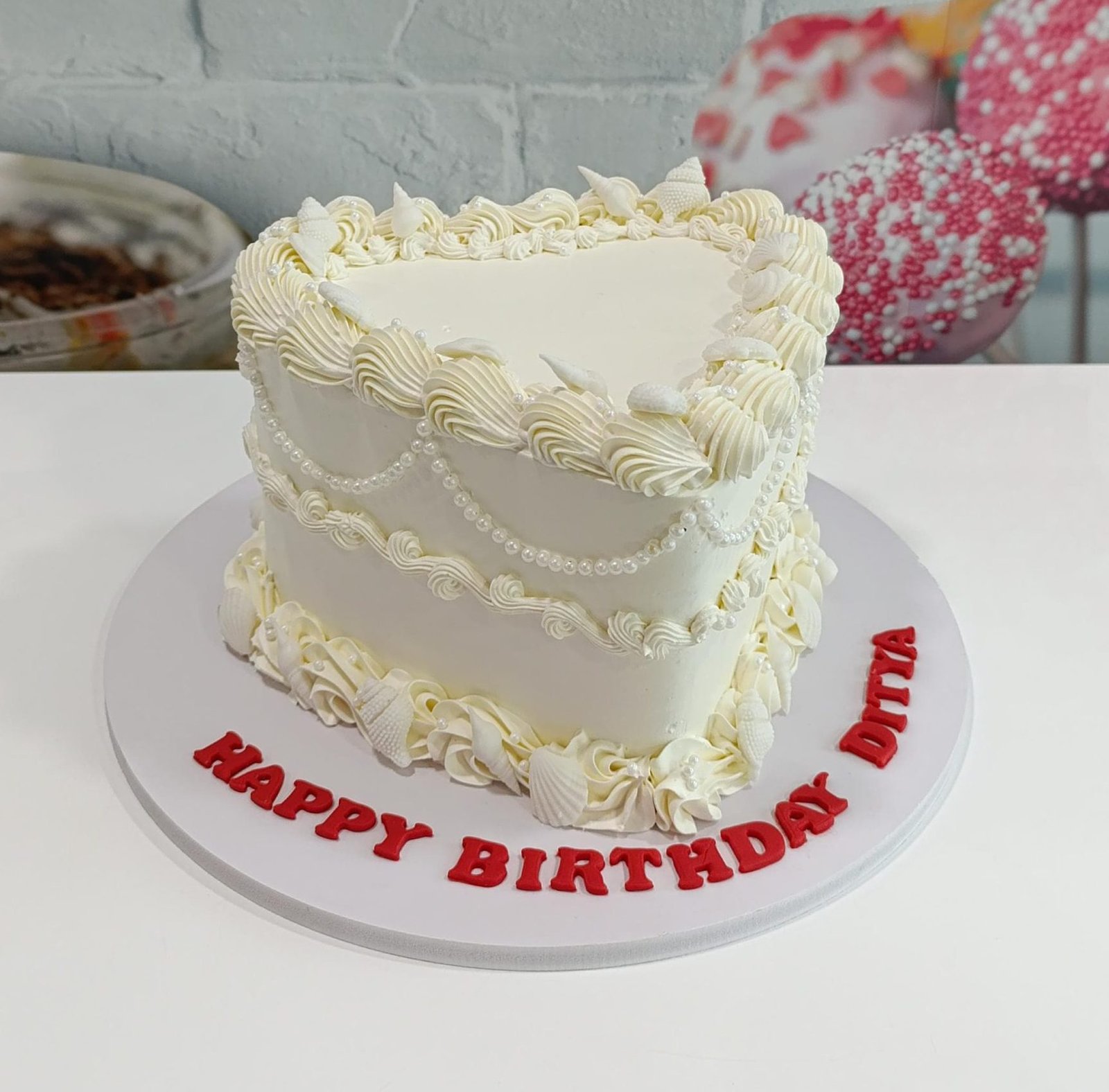 A white retro piping cake great for wedding or engagement occasions