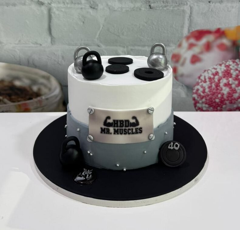 The ultimate cake for the fitness enthusiast! A clean, industrial-style design featuring realistic 3D kettlebells and weight plates.