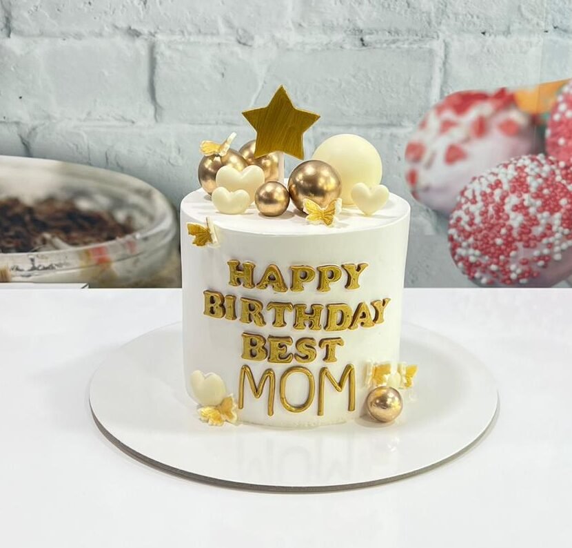 Adorned with shimmering gold butterflies, spheres, and a bold star topper, it’s a chic way to celebrate her special day. The elegant “Best Mom” lettering makes it a gift she’ll never forget.