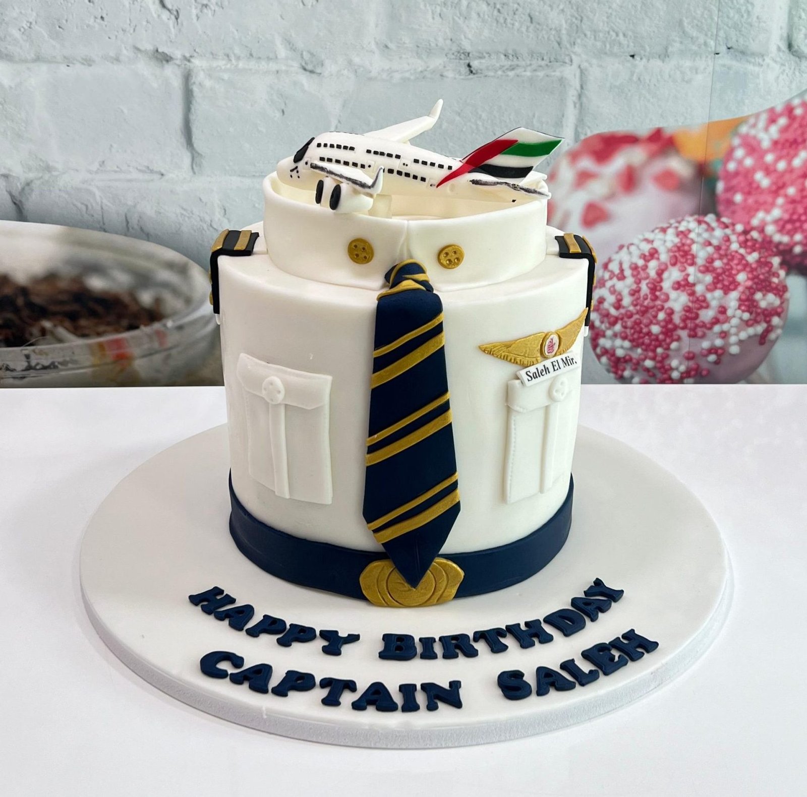Ready for takeoff! This impressive cake is designed to look exactly like a crisp Pilot’s Uniform, complete with gold buttons, wings, and epaulets. A unique and thoughtful gift for a pilot, aviation enthusiast, or a retirement party.